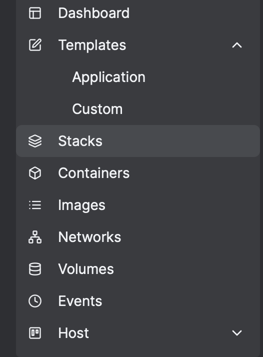 The instructions below will be tailored to Portatiner. So, from Portainer, select “Stacks” from the menu.